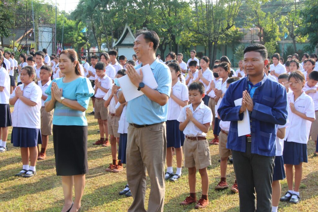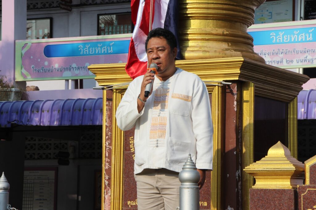นายชยพล คชขันธ์ ผู้อำนวยการโรงเรียนบ้านปากข้าวสาร(บริษัทข้าวไทยจำกัดสงเคราะห์ 2) ต้อนรับนักเรียนในวันเปิดเรียนวันแรกและกล่าวสวัสดี ทักทาย คณะครู บุคลากรทางการศึกษา และนักเรียน เนื่องในวันเปิดเรียนวันแรก ภาคเรียนที่ 2 ปีการศึกษา 2567 ในกิจกรรมหน้าเสาธงตอนเช้า