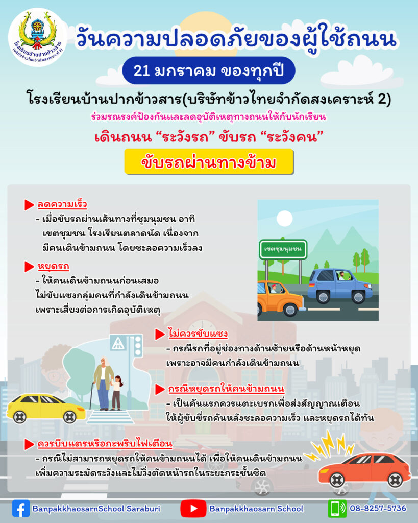โรงเรียนบ้านปากข้าวสาร(บริษัทข้าวไทยจำกัดสงเคราะห์ 2) ร่วมรณรงค์ป้องกันและลดอุบัติเหตุทางถนนให้กับนักเรียน