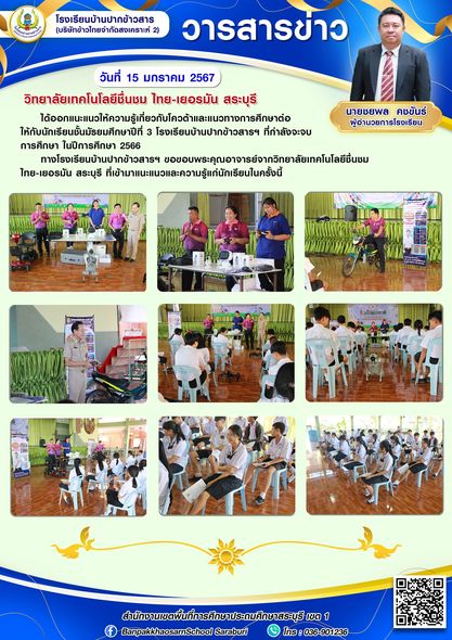 ทางโรงเรียนบ้านปากข้าวสารฯ ขอขอบพระคุณอาจารย์จากวิทยาลัยเทคโนโลยีชื่นชม ไทย-เยอรมัน สระบุรี ที่เข้ามาแนะแนวและความรู้แก่นักเรียนในครั้งนี้
