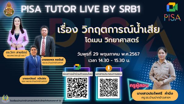 วันที่ 29 พฤษภาคม 2567 โรงเรียนบ้านปากข้าวสาร(บริษัทข้าวไทยจำกัดสงเคราะห์ 2) เป็นโรงเรียนต้นทางในการถ่ายทอด online กิจกรรม PISA TUTOR LIVE BY SRB1 โดเมนวิทยาศาสตร์ เรื่อง วิกฤตการณ์น้ำเสีย โดยมีคุณครูประไพศรี คำนึง เป็นวิทยากร โดยมี ดร.วิภา สายรัตน์ ผู้อำนวยการ สพป.สระบุรี เขต 1 กล่าวเปิดกิจกรรม